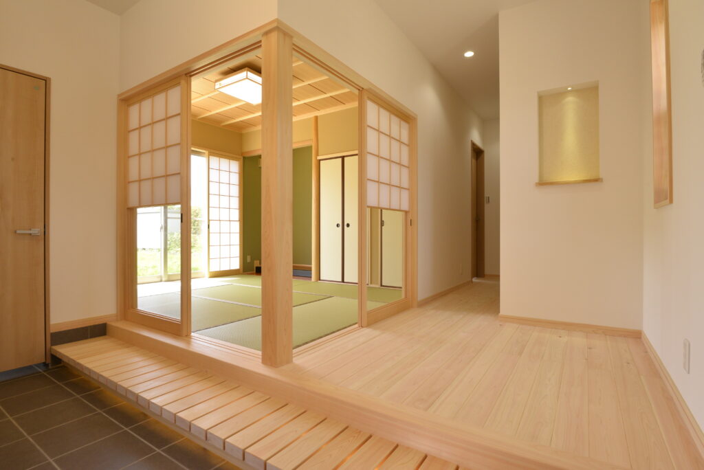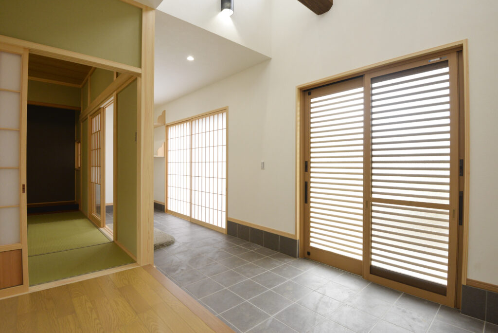 ■伝統的で安心感のある家、玄関土間が内外の空間が連続して、心地良い