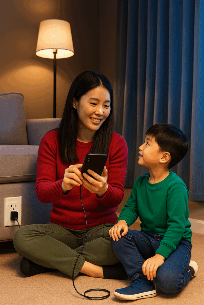 リビングでスマホやパソコンを充電しながらくつろぐことができます。
